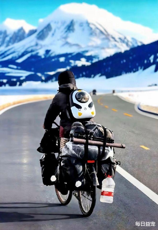 爆红后快递包裹追着骑行路线跑,赵朔的驮包从30斤增至80斤,装着猫用定位项圈、冻干鹌鹑和粉丝寄来的《猫经》。