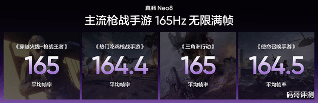真我Neo8更带来超30款热门手游原生165帧模式,覆盖FPS、MOBA、竞速、格斗、音游五大主流品类。165Hz相比120Hz每秒多渲染45帧,画面更丝滑,高速移动场景全面告别拖影。真我Neo8还搭载新一代妙感触控芯,最高提供3800Hz瞬时触控采样率,十指360Hz报点率,配合旗舰同款游戏触显同步技术,让触控事件与显示帧精准对齐,让FPS游戏开镜瞄准响应更快,决胜击杀赢在毫秒。此外真我Neo8还配备超声波3D指纹,支持湿手秒解,让夜晚解锁不晃眼;晶铠玻璃提升了意外防护的全面保障。