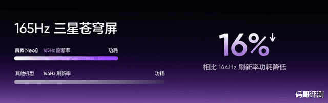 极致性能需要顶级屏幕来呈现。真我Neo8携手三星显示全球首发165Hz三星苍穹屏,采用M14旗舰发光材料,发光能效提升26%,165Hz功耗相比行业144Hz降低16%。