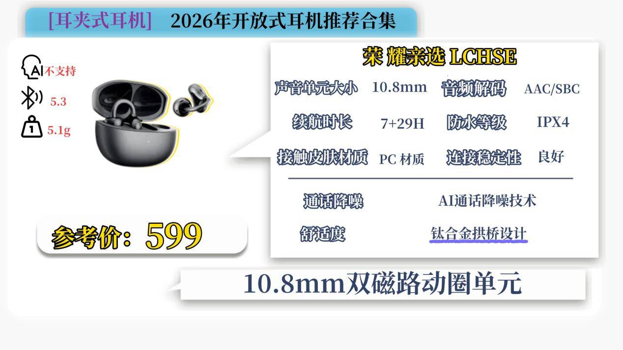 开放式耳机性价比推荐九:荣 耀亲选 LCHSE