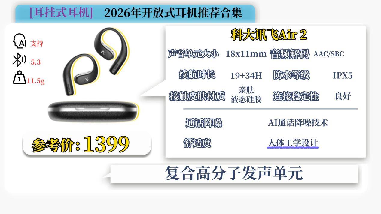 开放式耳机性价比推荐六:科大 讯飞Air 2