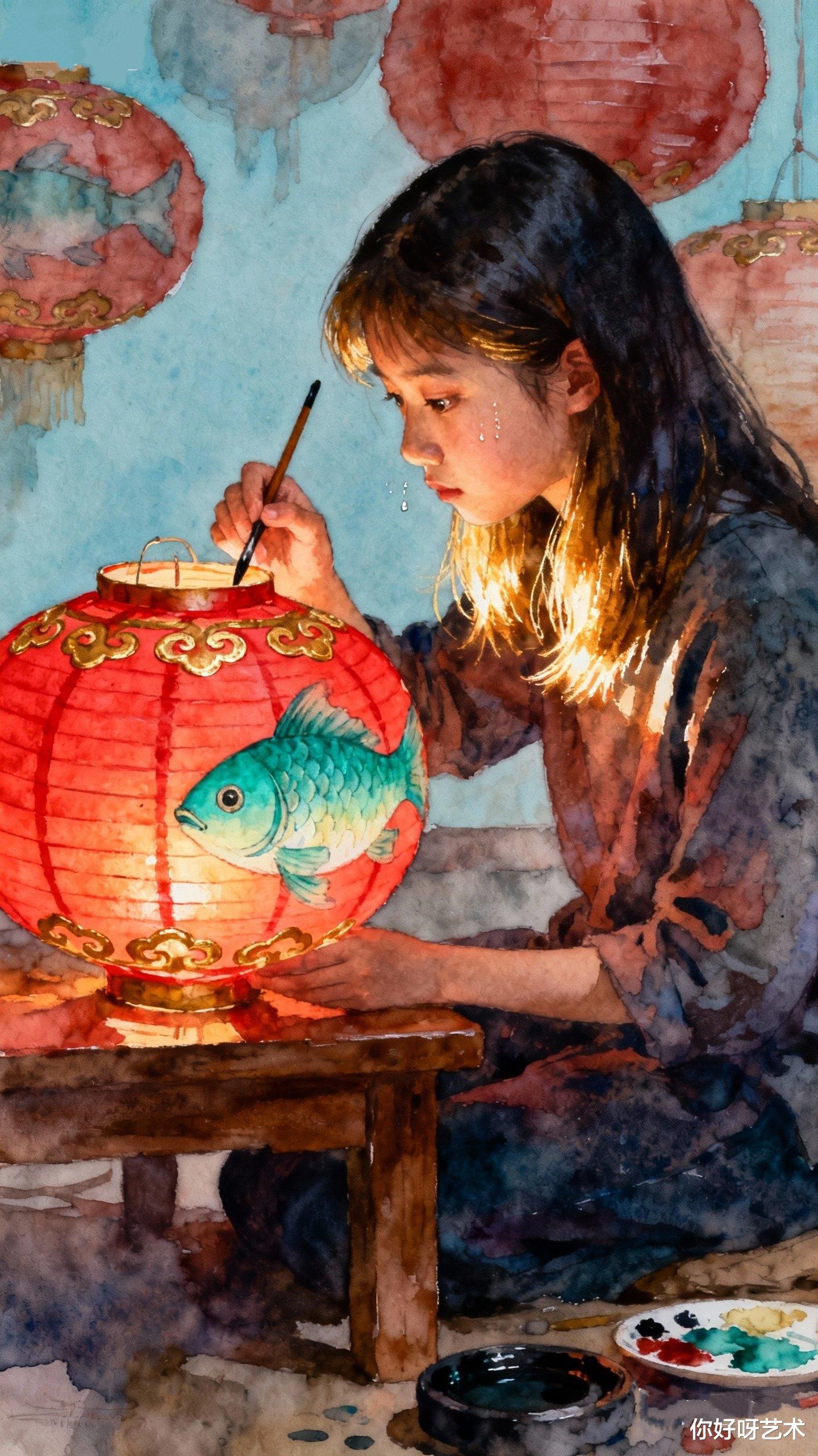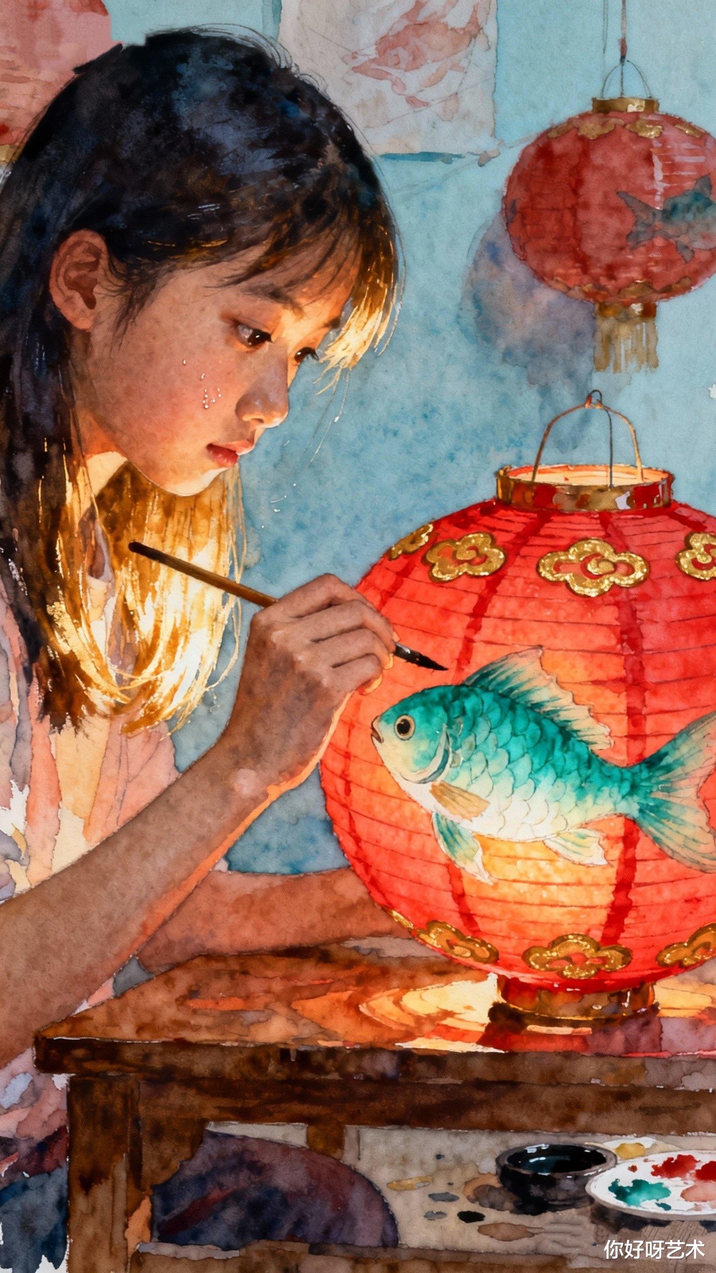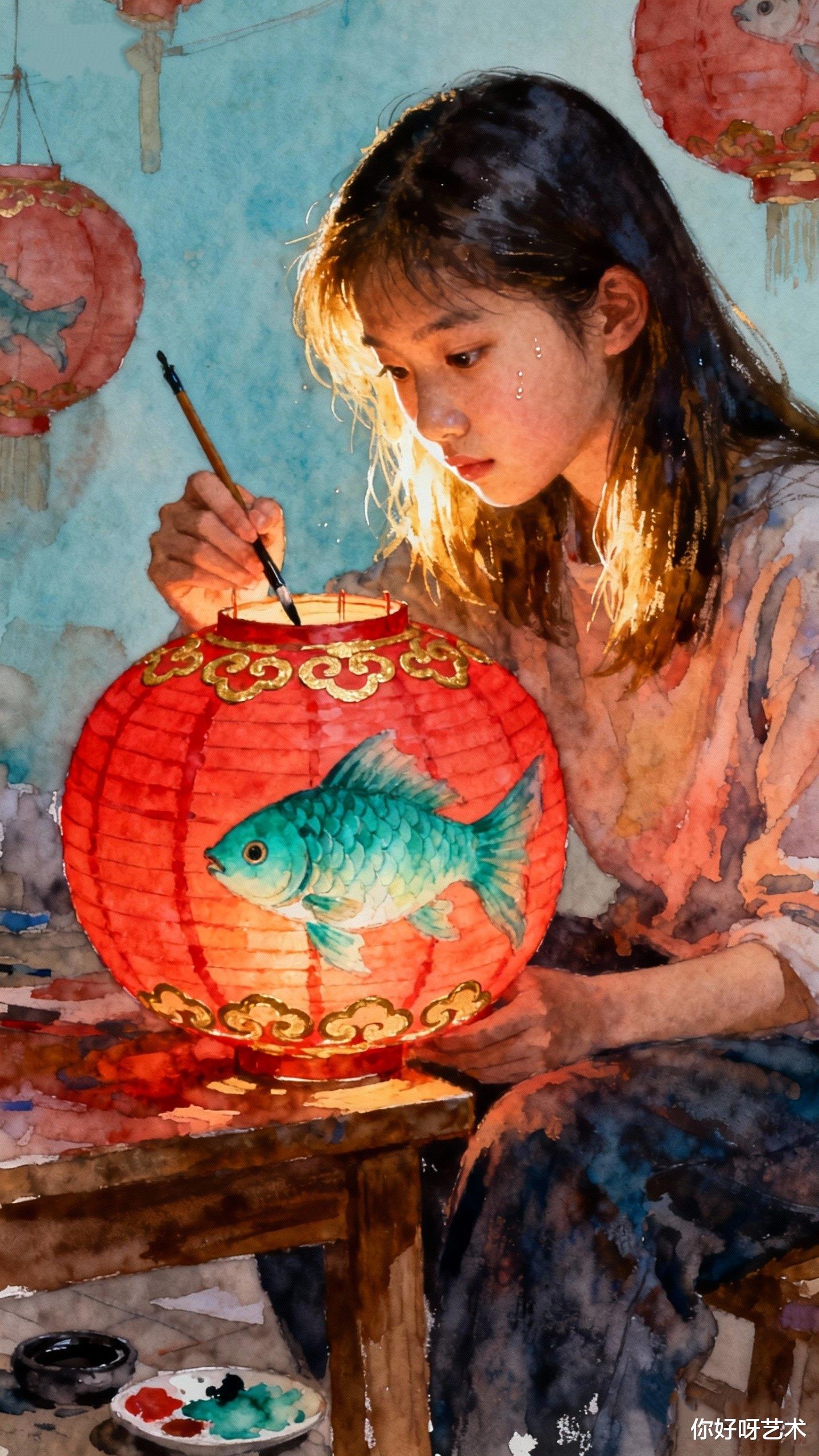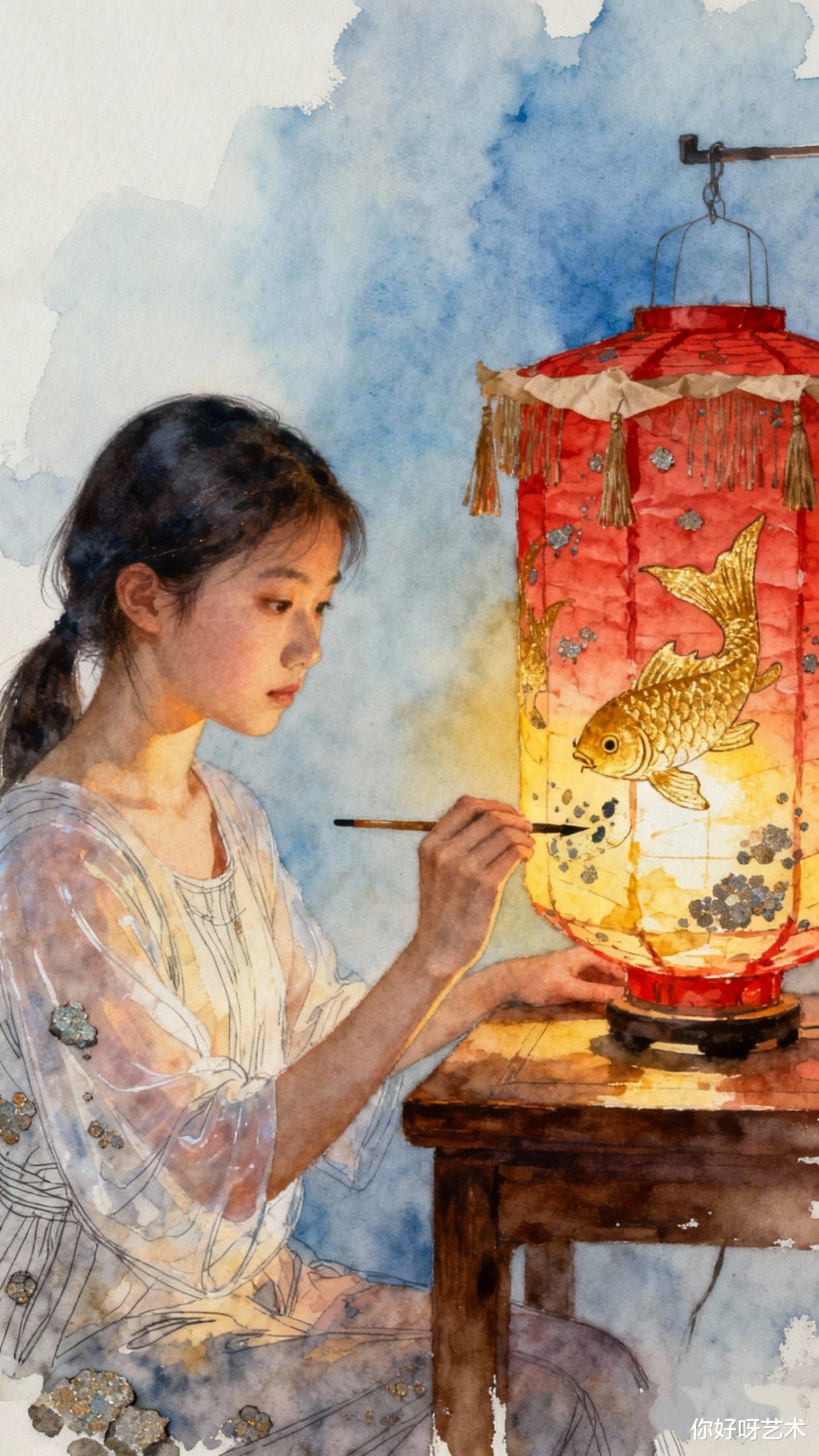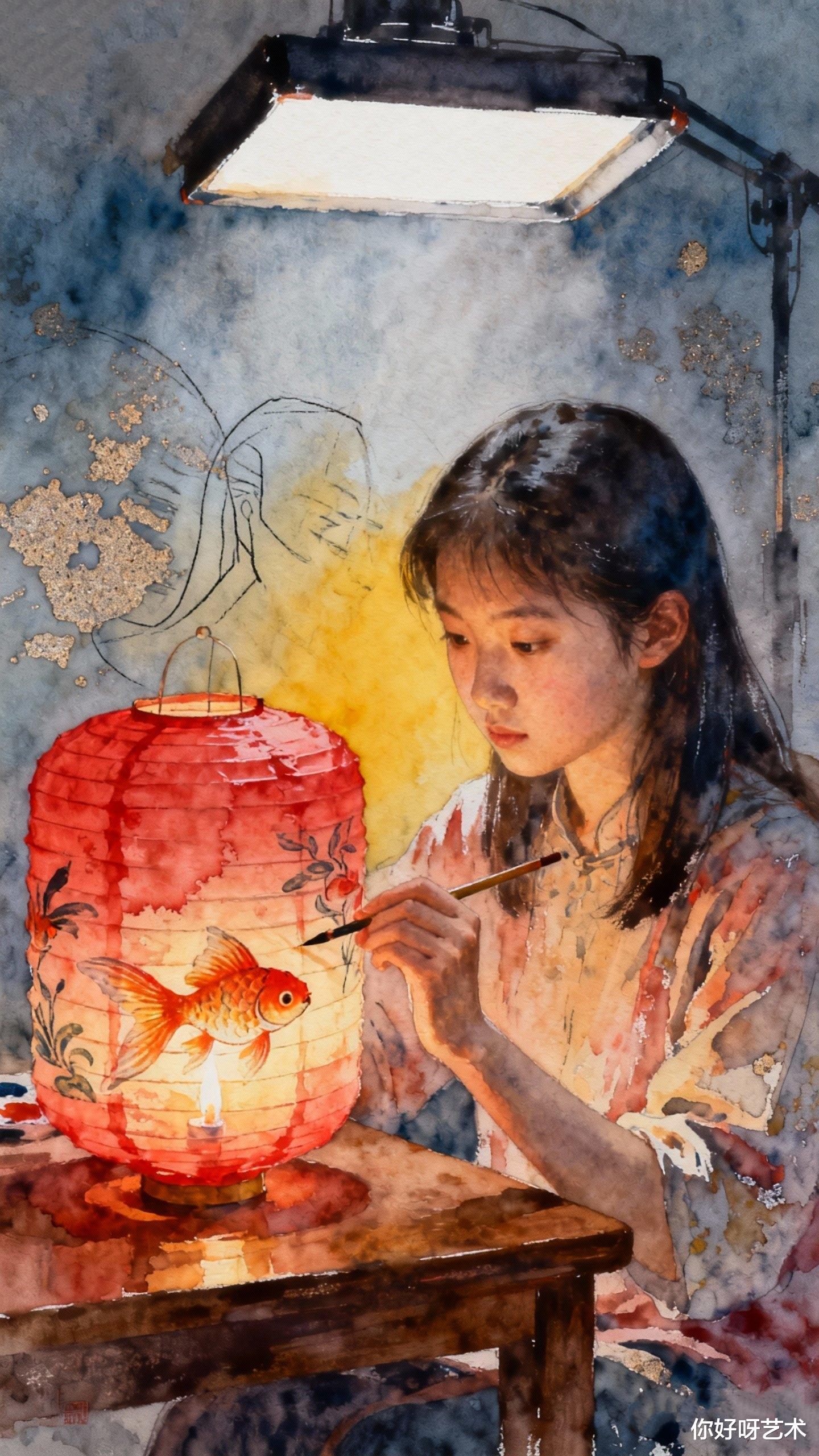 冬月初八的午后,阳光透过窗户,洒在画纸上。我放下笔,看着这幅水彩画。少女、鱼群和溪水,都在纸上活了过来。它们不再是颜料和纸张的组合,而是一个关于记忆、关于温柔、关于生命的故事。