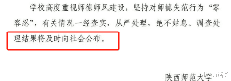 而陕西师范则是:调查处理结果将及时向社会公布!