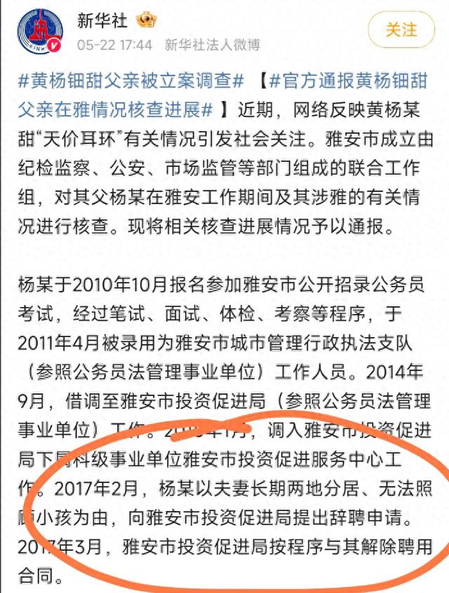 果然有问题,黄杨钿甜父亲被立案调查,新华社已通报,后悔也晚了