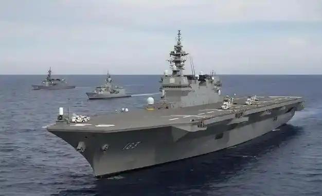 以"日向"级直升机母舰为指挥中枢,配合驱逐舰编队护航