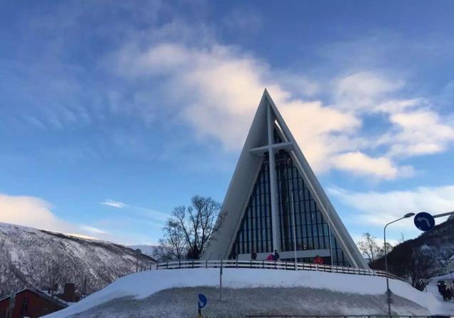 ●【北极大教堂】入内(游览不少于45分钟),也被称为特罗姆斯达伦教堂。这座被称为 为北极海的极具现代感的大教堂,据说是将特罗姆瑟的冬天和极光有机结合设计而成,教 堂内有一面高约12米,重达6吨的彩色玻璃,终日散发着美丽的光芒。