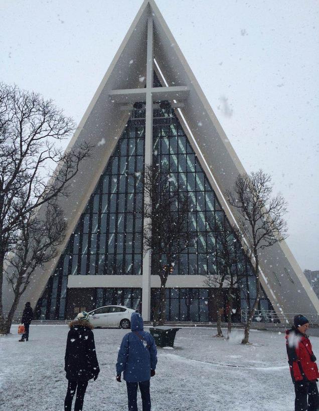 第一次走进北极大教堂,无论是教堂设计还是教堂坐落的绝妙的位置,都让我赞叹,洁白的外衣,与白雪融为一体,彩色的玻璃,让画面中的故事,更显神秘且直击心灵,面朝大海,一座大桥延伸过去,似乎寓意天地相连。
