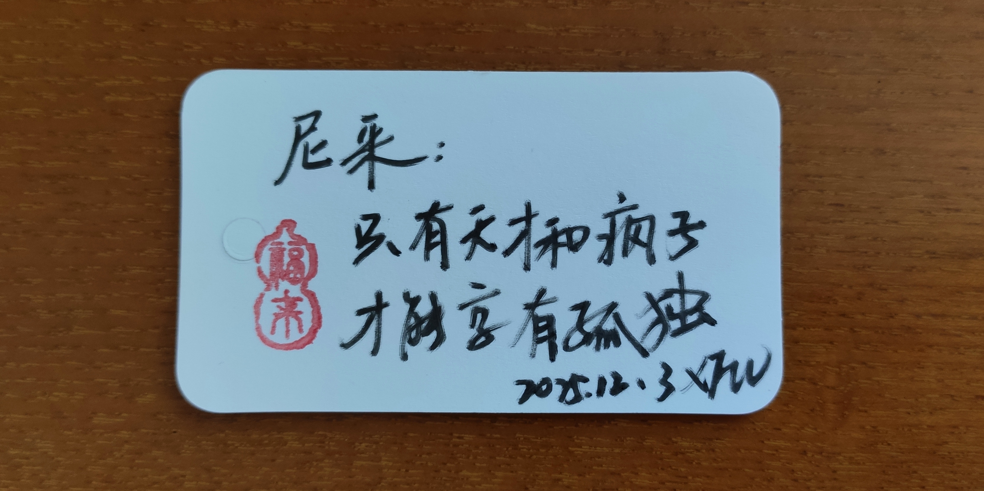 正如庄子所说:孤者无父,独者无伴。寂者情困,寞者心空。天才向来内心丰盈,有无可转化,无有可相抵。疯子乃执者未如心也。