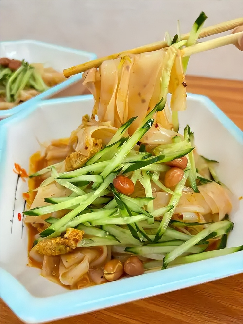 配菜:清脆爽口的黄瓜、鲜嫩的豆芽,为凉皮增添丰富口感与色彩。