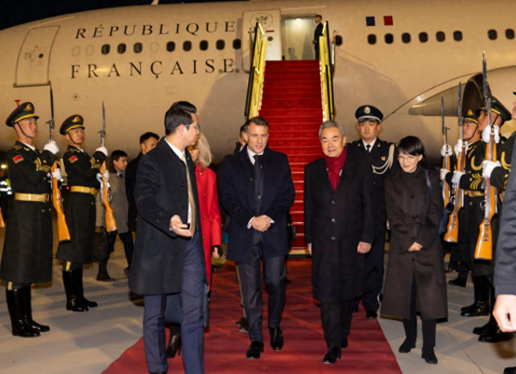 这次访华,马克龙带了6位部长,以及由35位大型集团负责人组成的豪华商务团。一下飞机,马克龙就见到了老熟人:中国外长王毅。由王毅外长亲自接机,可见中国对马克龙的重视。要知道,数小时前,王毅还在俄罗斯访问,并就日本问题跟俄罗斯进行战略对表。为了马克龙,王毅外长马不停蹄地赶回北京迎接。王外长,辛苦了!