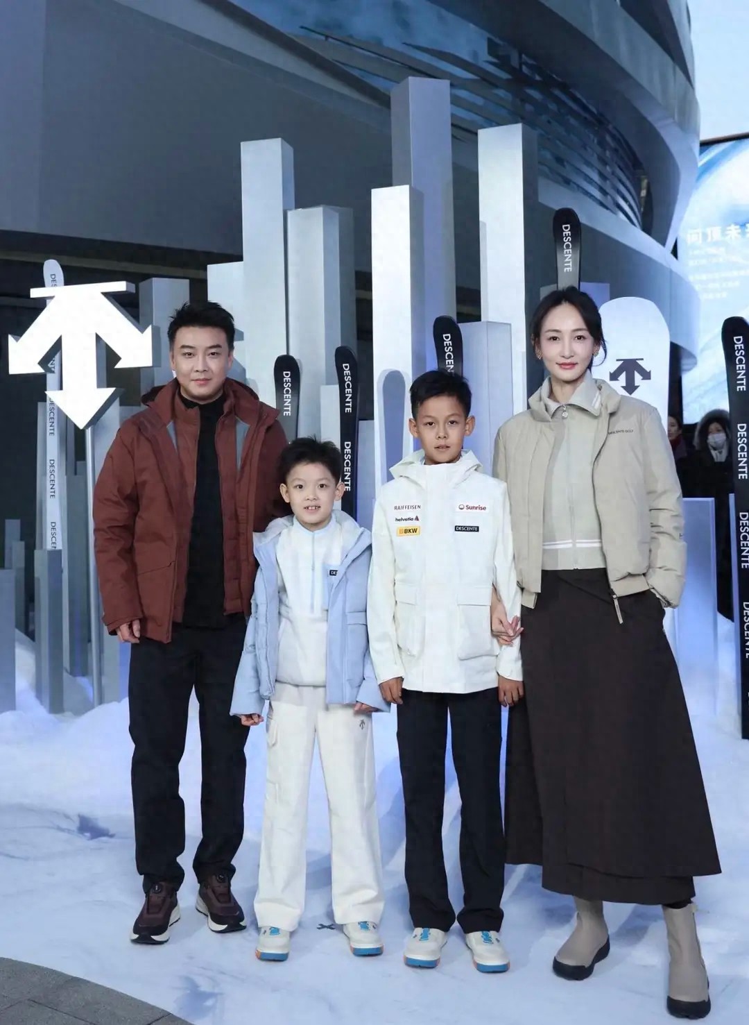 王皓一家四口北京参加活动, 两儿子一个像爸一个像妈, 妻子好漂亮。一家子都是高颜值。