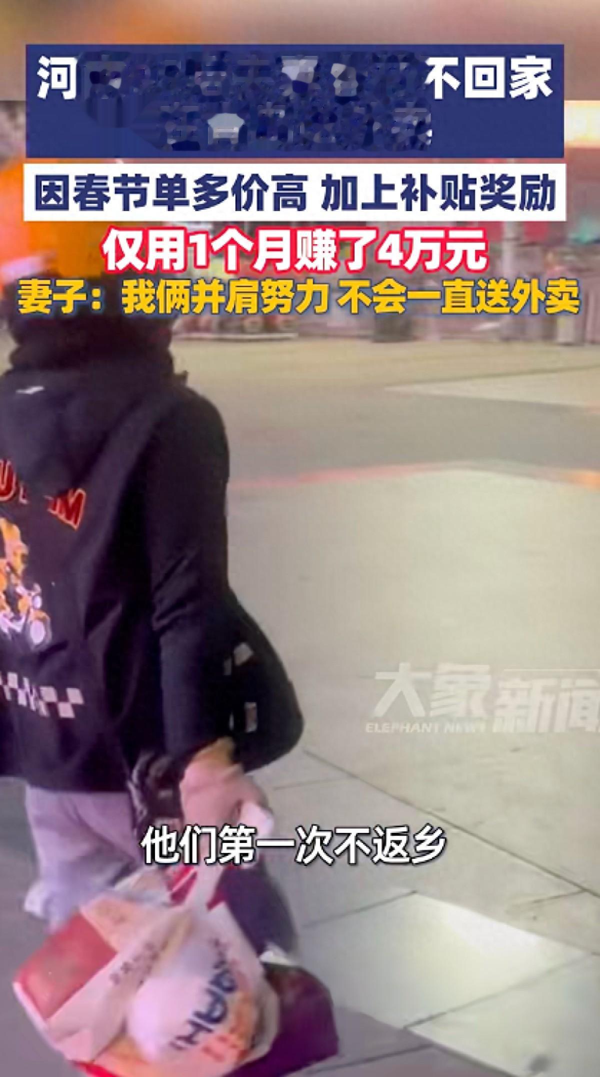为了还债,2026年春节,他们将俩孩子送回老家,自己选择留在青岛。这也是他俩第一次春节不回老家,他们留下的理由很现实:春节单多、价高,四周时间他们赚了近4万块钱。孙晓慧说,“债,会一笔一笔还清,我俩不会一直送外卖,但会一直陪伴着彼此,跑下去……”