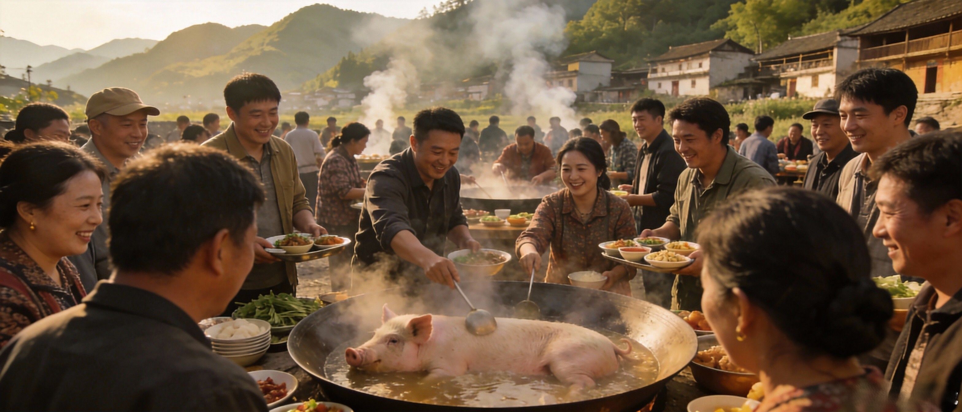 “我不担心猪不够吃,我只担心怎么把大家招待好。”