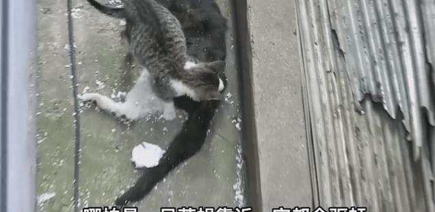 看到这一幕,所有人都以为它们是一对猫父子。但周边的住户说道,它们仅仅认识一个月。