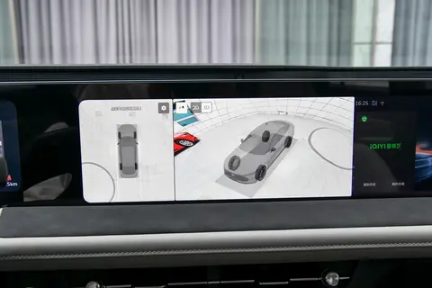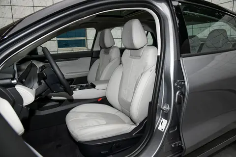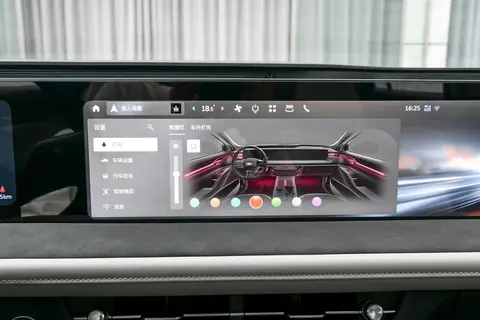 坐进车里,内饰的豪华感和质感也提升了不少。环抱式的座舱设计,让你坐进去就有种被包裹的安全感,而且整体布局特别合理,所有的功能按键都触手可及,操作起来很方便。这次焕新还新增了不少软包材质,不管是方向盘、中控台,还是门板内侧,经常摸到的地方都是软软的,触感特别舒服,再也没有那种硬邦邦的塑料感,整体品质一下就上来了。内饰的配色也很讲究,深色和浅色的搭配显得特别大气,再加上一些细节处的镀铬装饰,不会显得单调,反而透着一股低调的豪华。最让人眼前一亮的是那块 27 英寸的 4K 中控屏,从主驾铺到副驾,视觉冲击力直接拉满,就像把一台平板电脑搬进了车里。不管是驾驶位还是副驾驶,坐起来都特别舒服,前排座椅支持 10 向电动调节,头部空间相当充裕,方向盘前后调节范围足够,即便调至半躺姿势,手部仍能自然搭在方向盘上。运动座椅的侧翼包裹感明显,长时间开车也能提供不错的支撑,就是填充物硬度偏高,长途驾驶时可以搭配一个透气腰垫会更舒服。