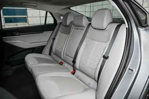 说到乘坐体验,新蒙迪欧的大空间绝对是加分项,轴距达到了 2945mm,这个数据在中高级轿车里表现很出色,比本田雅阁的轴距多出了 115mm,堪称 “B 级车的尺寸,C 级车的空间”。再加上黄金轴长比的设计,直接带来了“大五座” 空间,尤其是二排的腿部空间,真的特别宽敞。我身高 180cm,坐进二排,膝盖离前排座椅还有三拳左右的距离,完全可以跷个二郎腿,就算是长途旅行,后排的家人也不会觉得憋屈。而且中间地台凸起只有 3cm 左右,比本田雅阁高达 15cm 的地台凸起人性化多了,后排中间乘客的脚部空间也很充裕,长时间乘坐也不易感到疲劳。除了乘坐空间,车内的储物空间也特别实用,总共有 43L 的储物容量,中控台还扩容了 4.5L,车门下部的储物槽容积就有 3.2L,开口宽度 280mm,能轻松容纳 1L 标准水瓶。无线充电板的位置设计得比较深,手机放进去不容易滑出来,板面材质是带纹理的橡胶,摸上去很有质感。后备箱的表现也很亮眼,常规状态下容积是 520L,日常买菜、放婴儿车、装行李箱都完全够用,要是需要装大件物品,把后排座椅放倒,容积就能扩展到 1550L,不管是搬家具、放露营装备,还是长途旅行带很多行李,都能轻松应对。