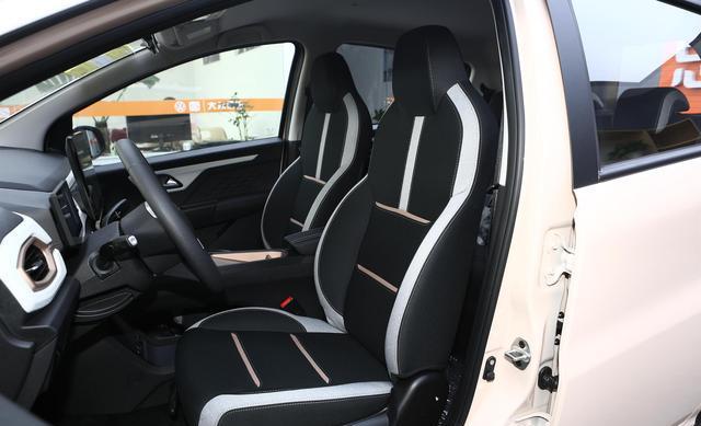 新款花仙子座椅采运动一体化设计,可前后及调节靠背角度,但无高低调节。顶配满天星车型配皮质座椅,其余三款则为织物材质。