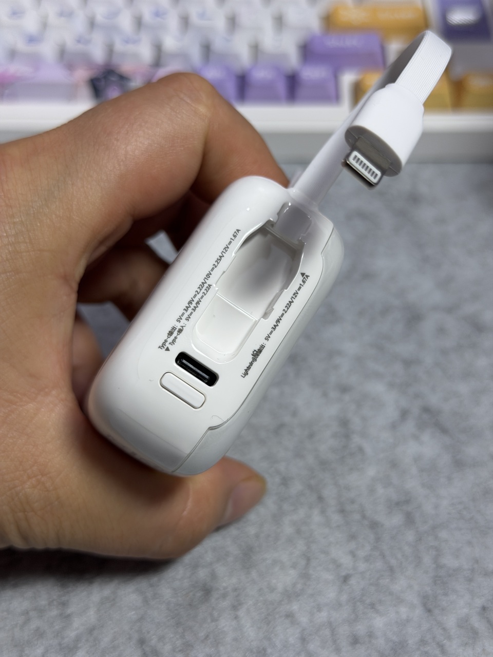 更加分的是它还自带了Type-C和苹果双接口线,不用额外再带线,出门随拿随充,彻底解决了忘带线、线缠在一起的麻烦。不用的时候线可以直接收回去,整整齐齐不凌乱。线材还能当成手绳用,挂手上、挂包上都方便,把便携和实用做到了一起,日常出门用真的太省心了。