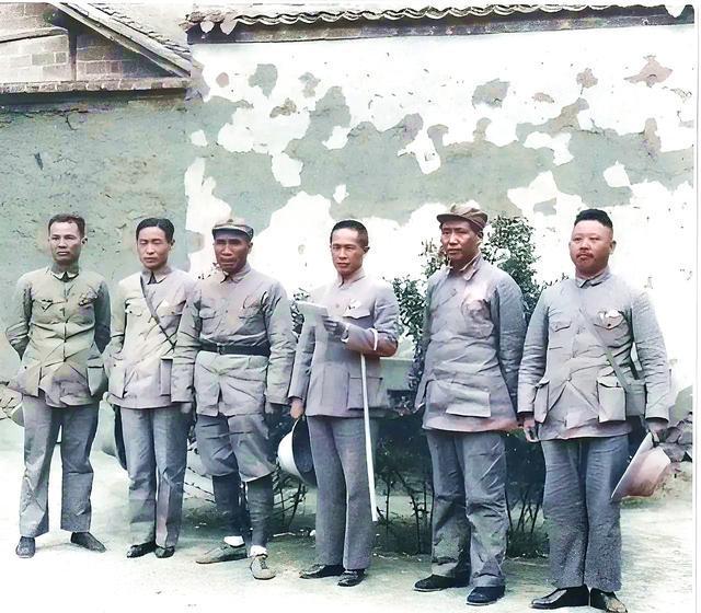 这张照片包含两个引人注目的方面:首先,毛主席、叶剑英与朱德在拍摄时采取了较为自然的站立姿势,显得较为放松;相比之下,国民党中央考察团的成员,如萧致平、邵华和涂思宗,则以较为正式的军姿站立,显得较为拘谨。其次,从照片中军装的外观来看,我方人员的军装显得较为陈旧,而国民党方面的军装则看起来较为崭新。这一差异也在一定程度上反映了当时国共双方的经济状况。