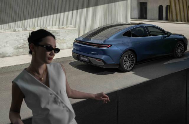 视线掠过车身,流畅的线条勾勒出官方所称的「润玉流光」侧面轮廓,隐藏式门把手的运用,也使得车身侧面更显平滑和完整。