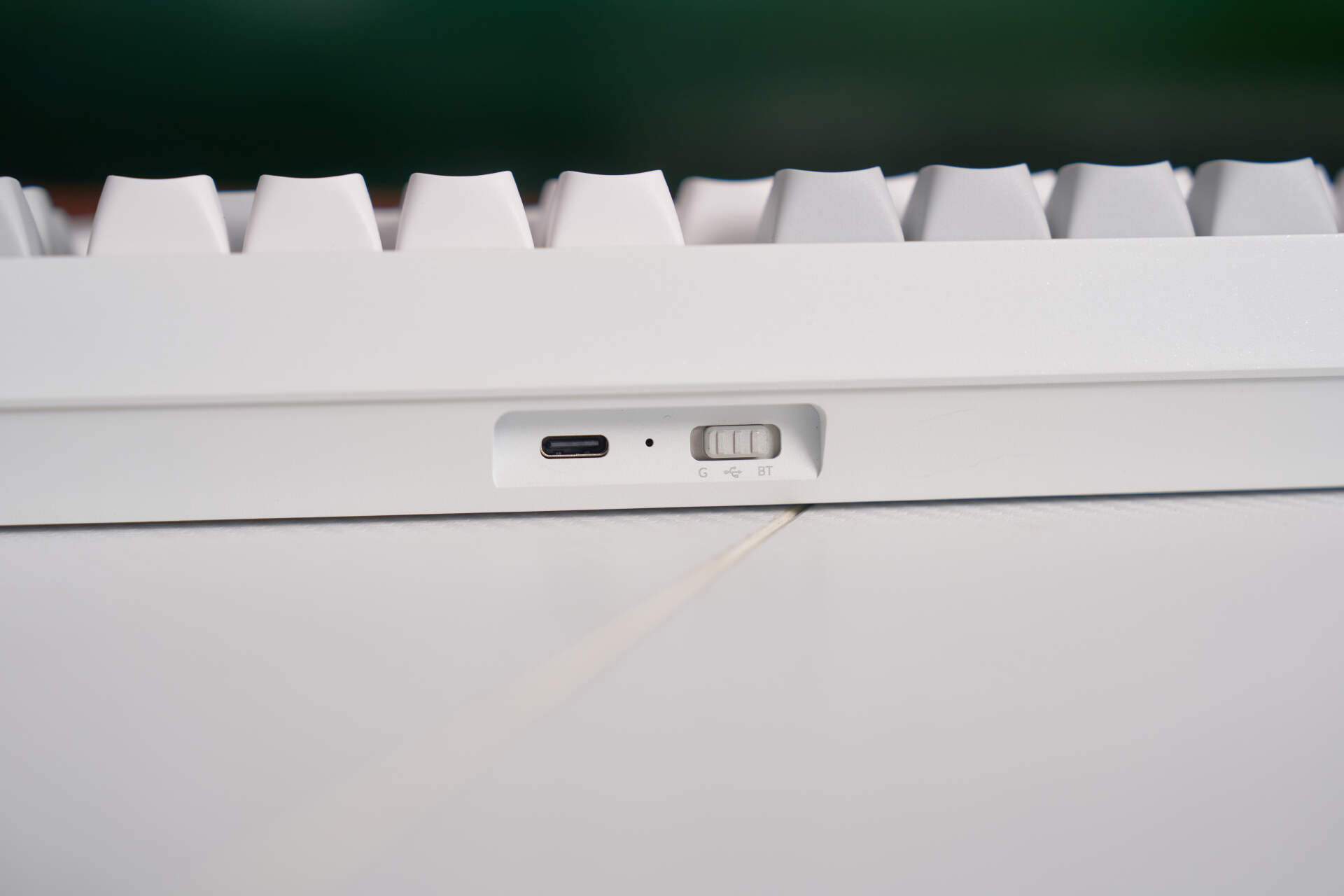 键盘的 Type‑C 接口与三模切换开关均布局在机身背部正中位置。
