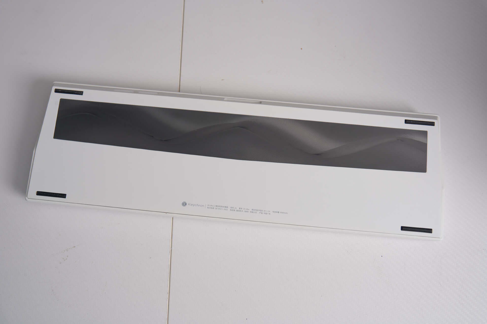 从机身铭牌信息可以看到,这款 Keychron Z6 Ultra 的核心配置为:107 键配列、RGB 背光、白色外观版本,搭配红轴方案。