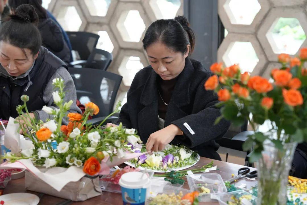 花绘心声,在艺术创作中治愈自我。活动的高潮,落在专为女职工打造的“鲜花曼陀罗”沉浸式艺术疗愈环节。在专业导师的细致引导下,女职工们以鲜花为语、以色彩为桥,随心挑选钟爱的花材、自由勾勒心仪的构图,借助曼陀罗圆满的圆形结构与对称美学,自然进入专注安定的正念冥想状态。那些潜藏心底的情绪、难以言说的压力、无处安放的困惑,都在这温柔的非语言艺术创作中自然流淌、温柔释放;在一花一叶的精心排布中,大家完成了情绪的正向转化与内在秩序的重构整合。宁静温暖的现场,每一幅作品都是女职工们独有的心灵独白,每一次创作都是与自我的深度对话。