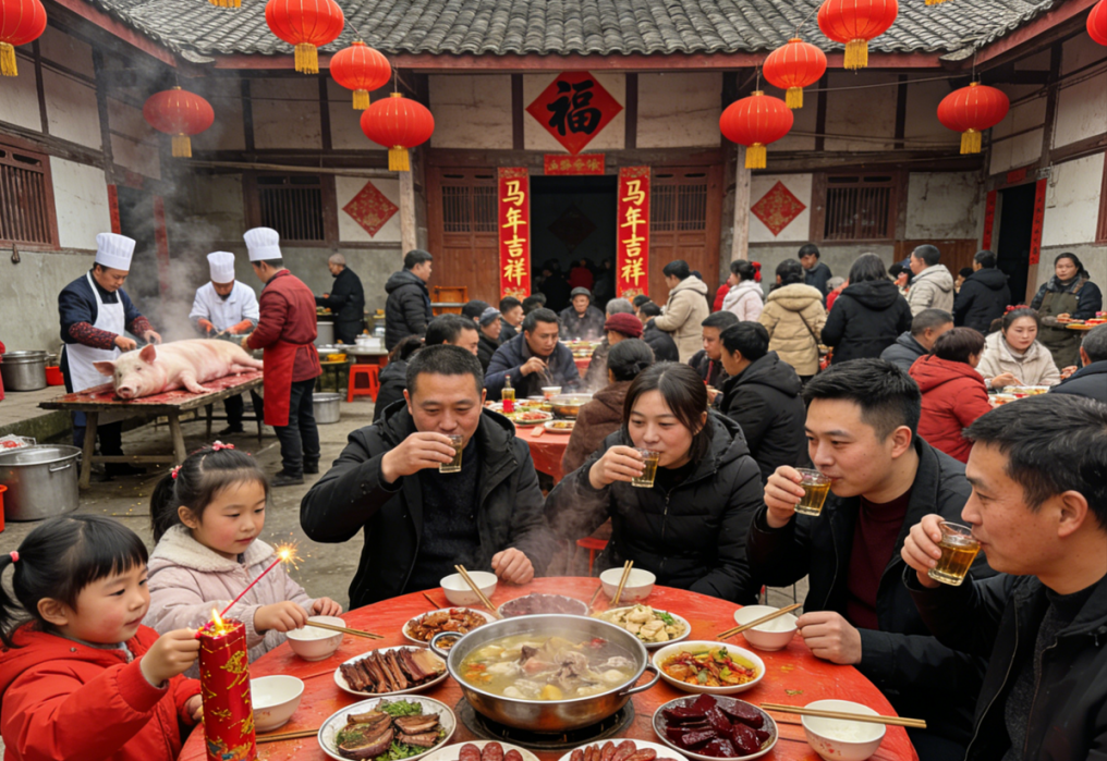 图片由AI生成全民奔赴的乡土狂欢撰文/李觐麟编辑/陈邓新排版/Annalee今年初一场意外爆红的刨猪宴,撕开了乡村文旅的