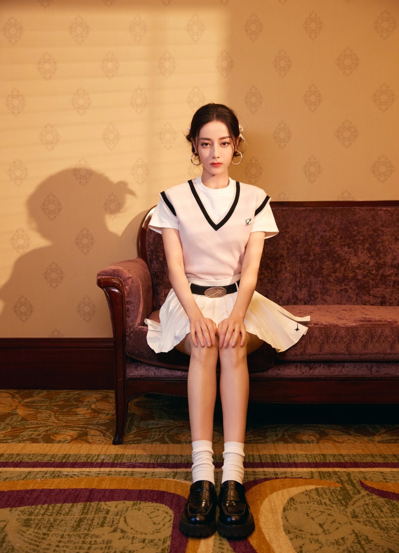 迪丽热巴减龄少女百褶裙装写真魅力四射