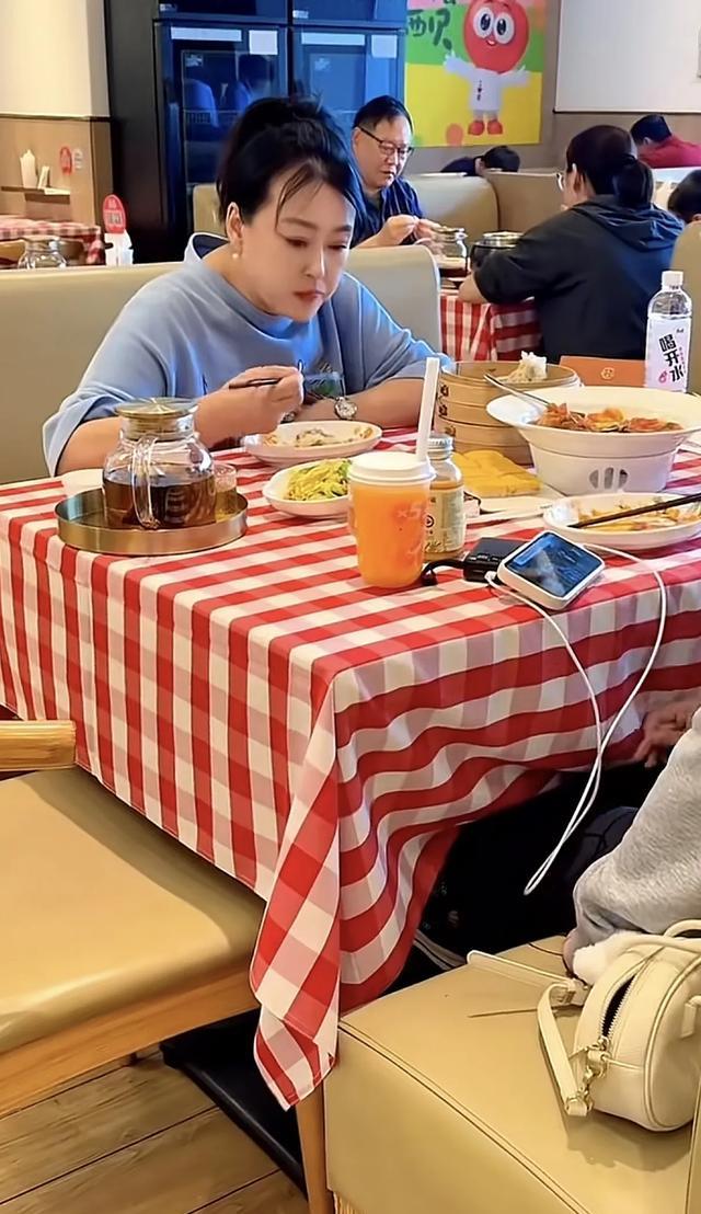 近日,有网友在某西北连锁餐饮店吃饭时偶遇到了李菁菁和女儿。