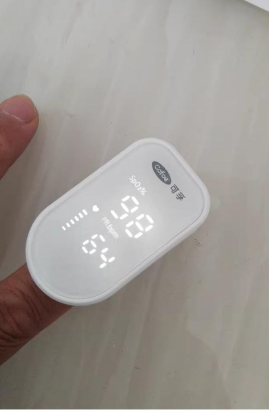 它的这个可孚血氧仪夹片是食品级硅胶,摸起来亲肤,测完手指不会留印子,脏了擦一下就行。用的是硅胶缓冲设计,夹力适中不会疼。不过夏天手心出汗时,夹片容易滑,得擦干手再测才稳。