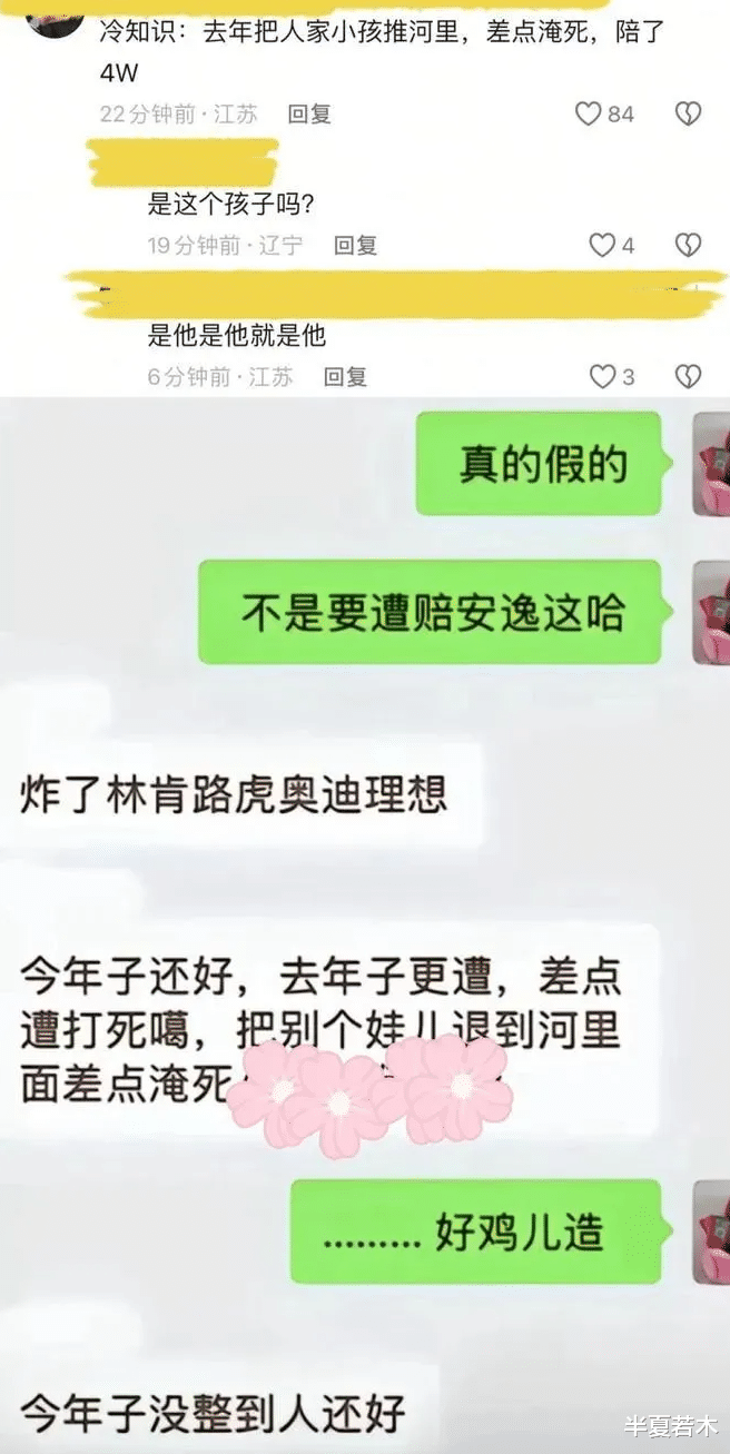 后来男孩和其家长已被警察带走,随着网络的发酵,扔鞭炮小男孩身份被扒。(网传小男孩去年把小孩推河里差点淹死)大过年的,本应是阖家欢乐、平安喜庆的时候,小男孩一家的春节肯定要过得不平静了。对于此时,有两种声音:一方面认为小男孩及其监护人全责,这个声音占了大部分。但也有极少数声音替小男孩辩护。