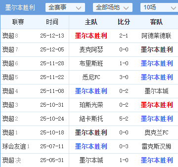 · 核心优势:防守极其稳固,是球队最大资本。在过去6场澳超比赛中,他们完成了5场零封。