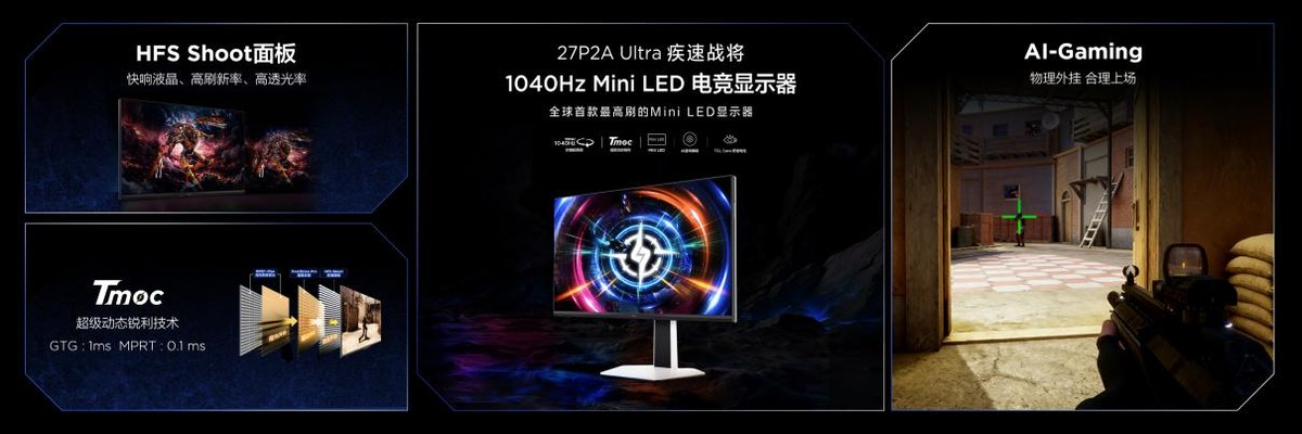 专注于瓦洛兰特、CSGO、三角洲行动等FPS游戏的硬核玩家注意了,P2A Ultra才是能提升你战力的“神器”,作为全球首款1040Hz Mini LED显示器,它直接将刷新率提升到了物理极限,搭配Tmoc超级动态锐利技术,既能彻底解决画面拖影问题,又能精准高亮游戏目标,拉枪、跟枪流畅无卡顿,轻松拥有职业选手级的操作体验,堪称“FPS玩家的专属神器”,想象要是把这台显示器摆进电竞房,那可就是全场最亮眼的战力担当!不过这款还没上市,感兴趣的朋友可以追着官方蹲一下。