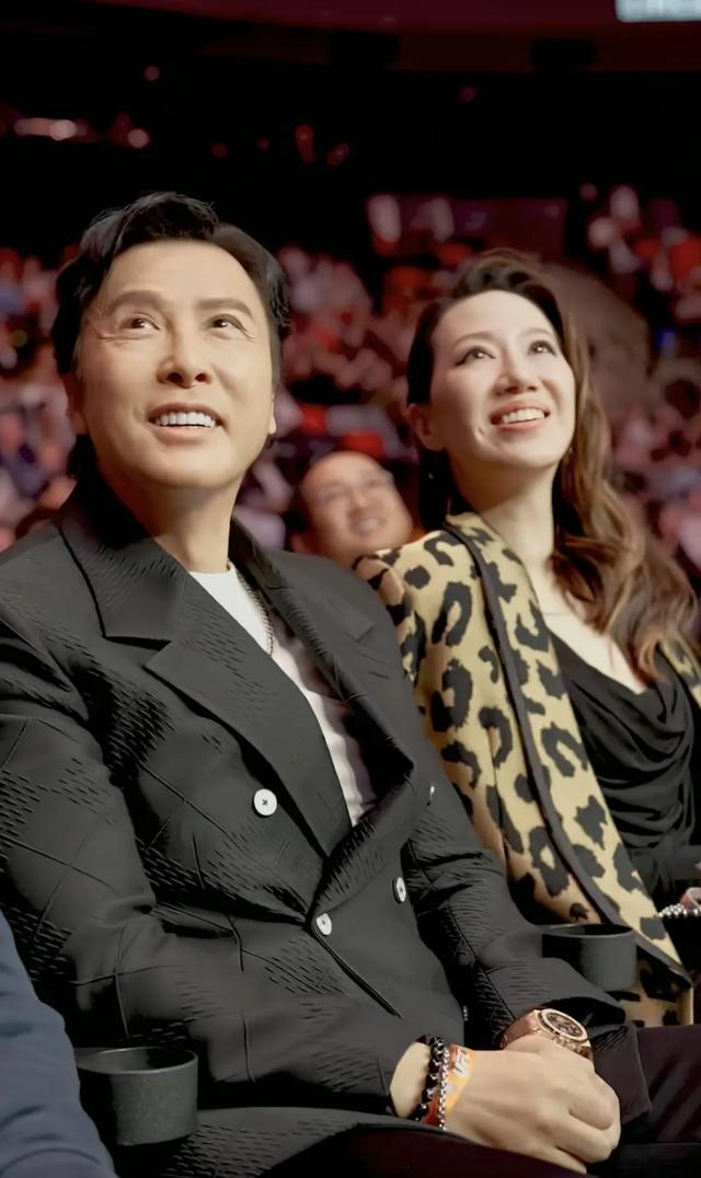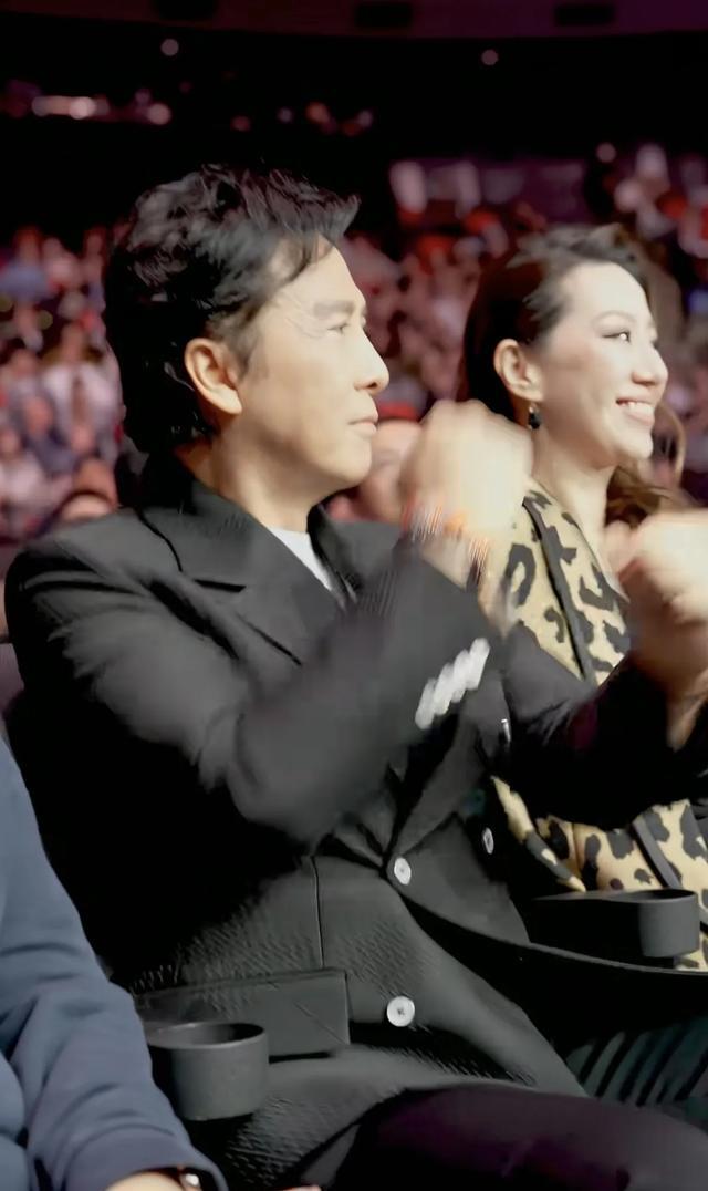 起初,甄子丹在观众席上安静地坐着,旁边有一位女士,长得特别漂亮,浓妆艳抹颇有模特的韵味。