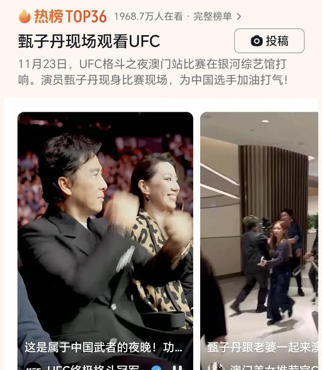 众多明星前来这里观看比赛,其中就有甄子丹和老婆汪诗诗。