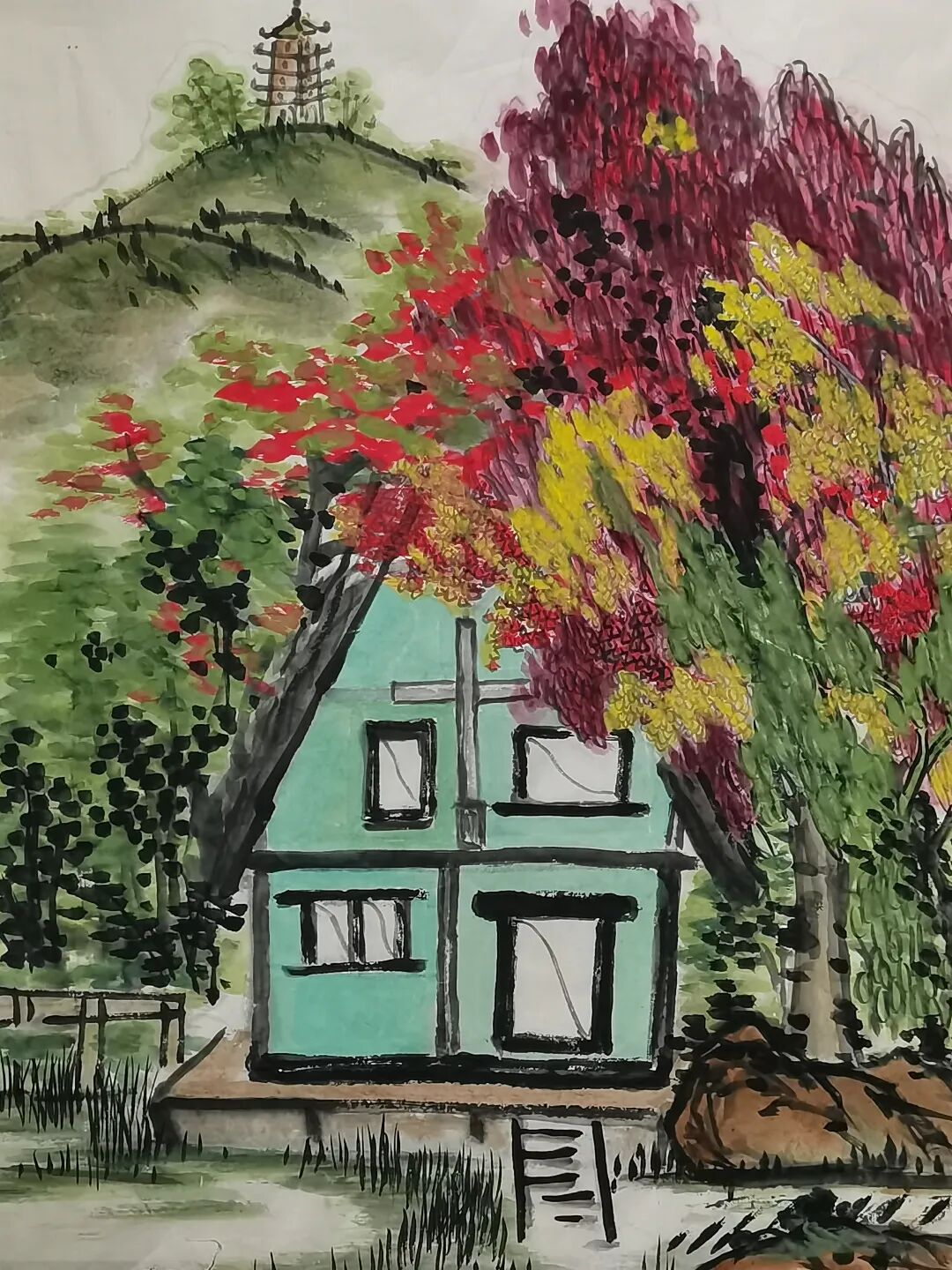 在岭东揭阳画坛,有一位温文儒雅的八旬老先生,艺名陈书略(原名邢鄂)艺术创作带着一种“承古不泥古,融西不悖中”的独特气质。出身书香世家的积淀,为其笔墨筑牢了传统根基;而对时代精神的敏锐捕捉与中西艺术语言的大胆融合,又让他的山水突破了传统范式,形成了色彩浓烈、意境厚重的个人风格,在笔墨与山河之间,搭建起传统美学与当代精神的桥梁。