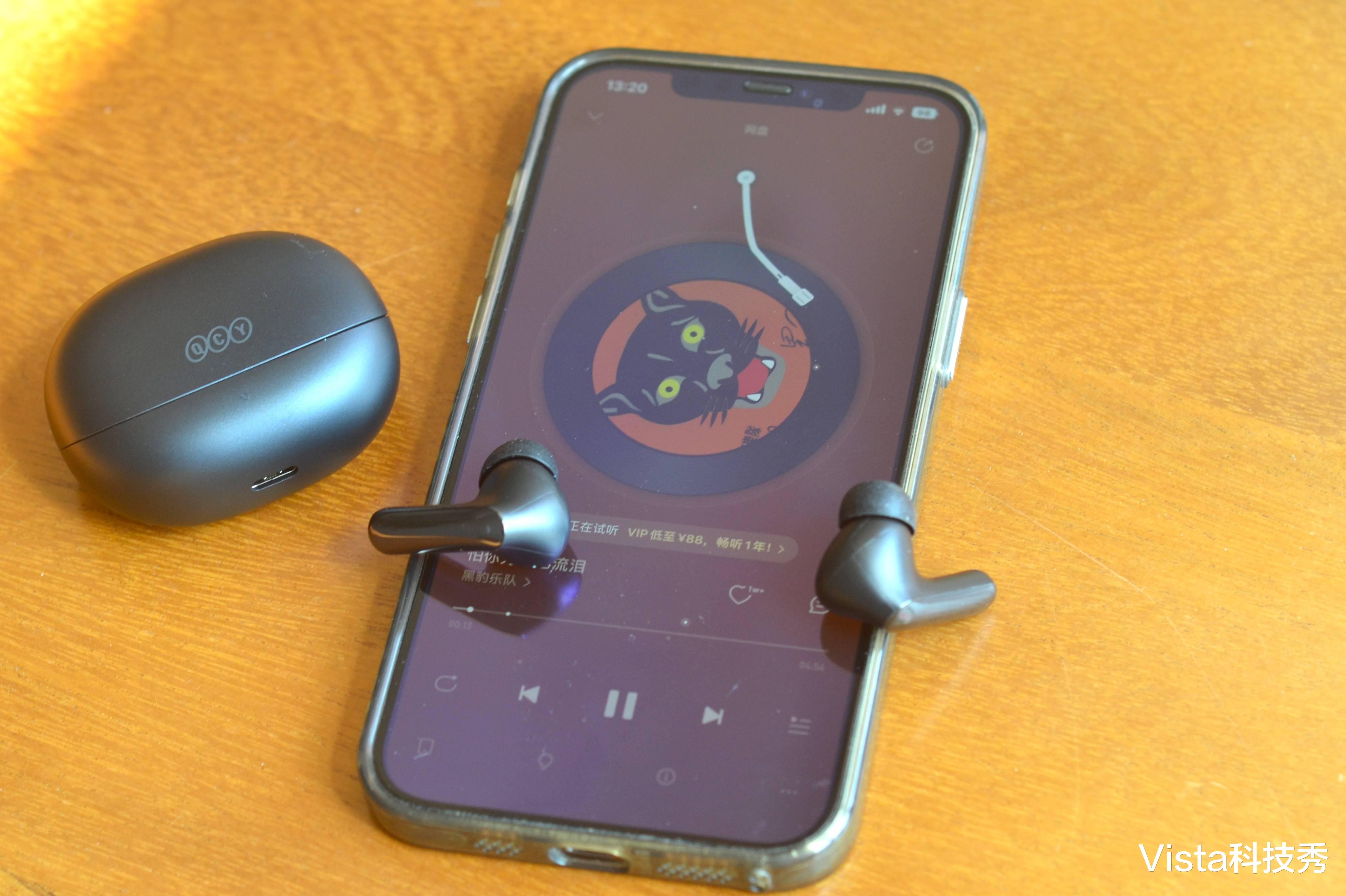 得益于QCY N20的13mm超大动圈和蓝牙6.0芯片,听歌的整体感觉饱满厚实,特别是低频区域的澎湃深沉,动态大的歌曲听着就带质感和弹性,中音部分透亮清晰,高音区域抑扬不刺耳,非常舒适的聆听感,也因此获得网易云音乐金标认证。