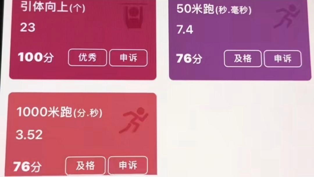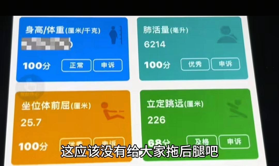 其中座位体前屈25.7厘米、肺活量6214毫升、引体向上做了23个,立定跳远也有226公分及格了,一千米跑了3分52秒、50米七秒四,这些都全部及格。