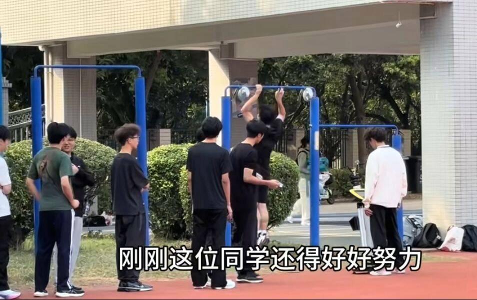 众所周知,在男性体测中,引体向上这个项目是最为吃力的,从现场的情况可以看出,很多男同学都不适应,甚至有个别人连一个都拉不起来,直接零分。