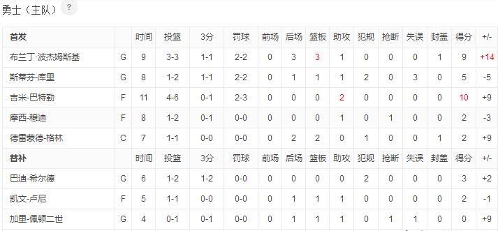 勇士凭借一波11-0的小高潮,以33-25领先结束首节。