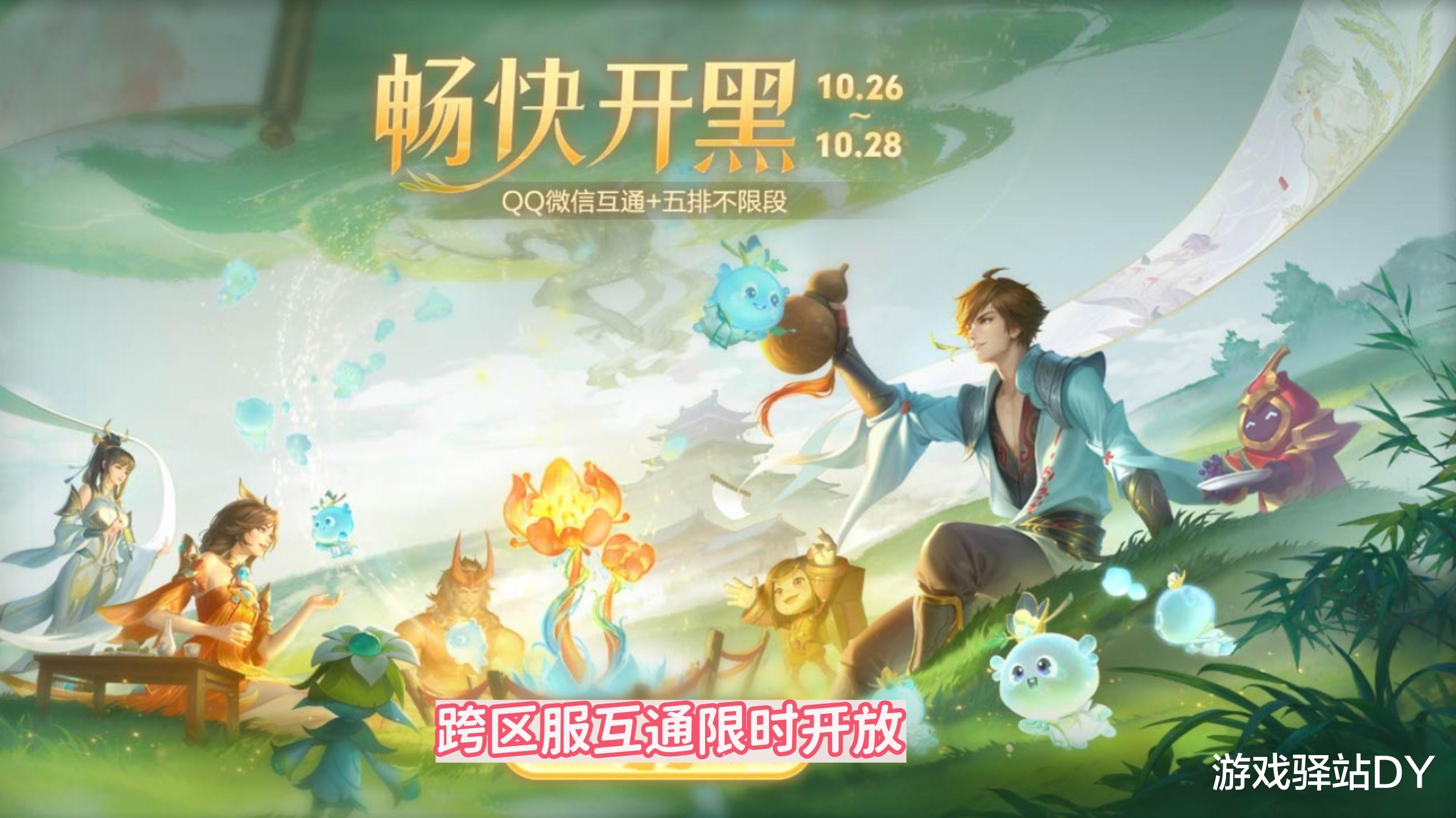 首先大型节日才会开启的五排不限段位福利再次上线,段位低的小伙伴可与大神玩家组排快速升星,不过这还是其次,主要是官方限时3天开放手Q和微信两个区服的玩家互通匹配,还未体验过的小伙伴可以尝试跨区服对抗。