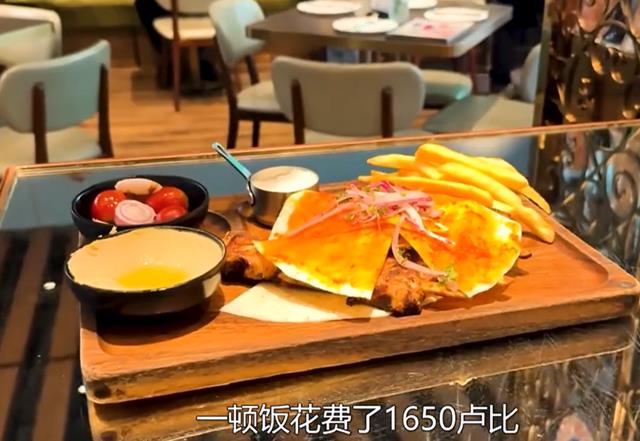 两样简单的食物花费了他1650卢布(约120元人民币),这个价位对于上海来说还算得上比较便宜,可对于印度人来说,这费用相当于一顿豪华大餐的级别了。