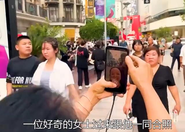 虽然上海的街头很多外国游客,但印度人还是比较少见的,很快一位女士走了过来,想要和他一起合照。