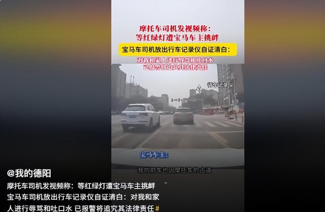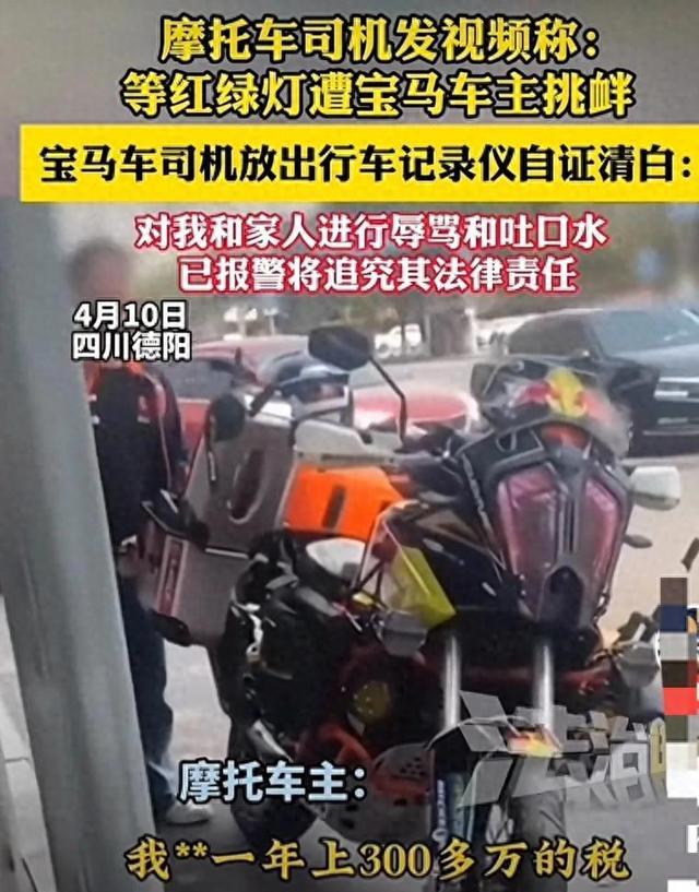 4月10日,四川德阳发生了一起冲突事故,某路口,一辆白色宝马车主和一辆KTM 1290摩托车车主发生口语冲突。