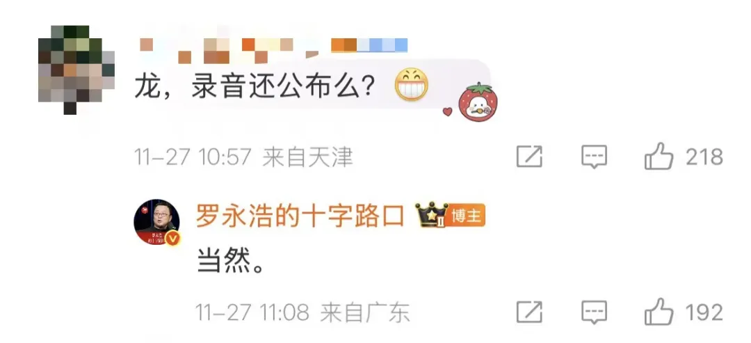 可惜,截至发稿老罗话没有公布录音,不过在评论区回复网友表示“会公布!没被威胁!没有私下接受道歉!”