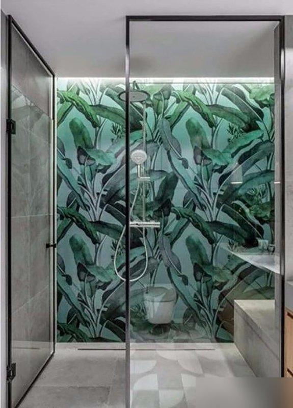 卫生间只留三样:壁挂马桶、长条地漏、一整面绿谷砖。