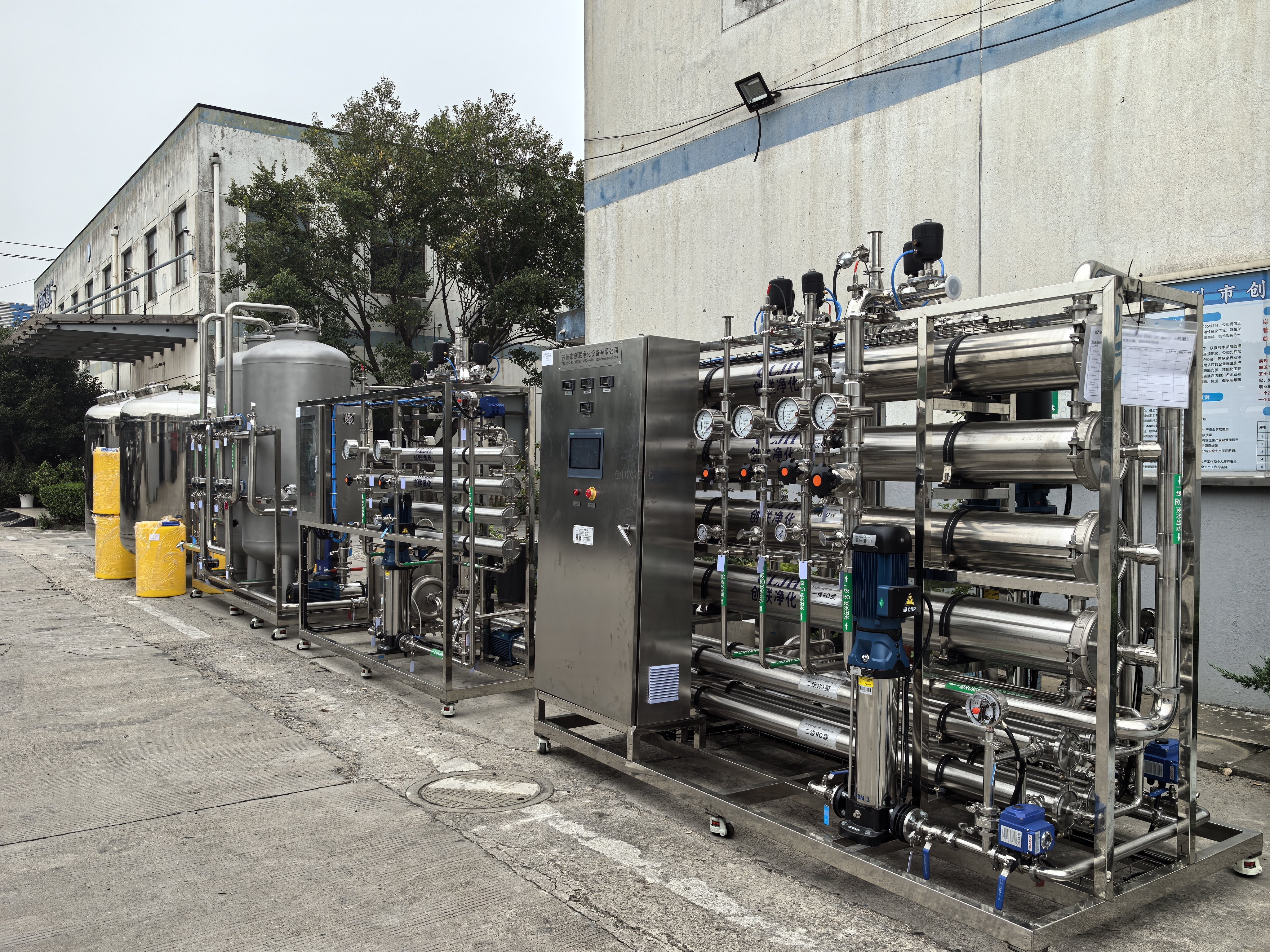 3、二车间新增1套8T/H一级纯水系统+2T/H二级纯化水系统:一级RO产水电导率≤15μs/cm(25℃),水质满足二级纯化水设备进水要求。二级纯化设备出水流量≥2T/H,二级RO出水电导率≤5us/cm(25℃),设备出水水质符合GMP2020版纯化水标准。