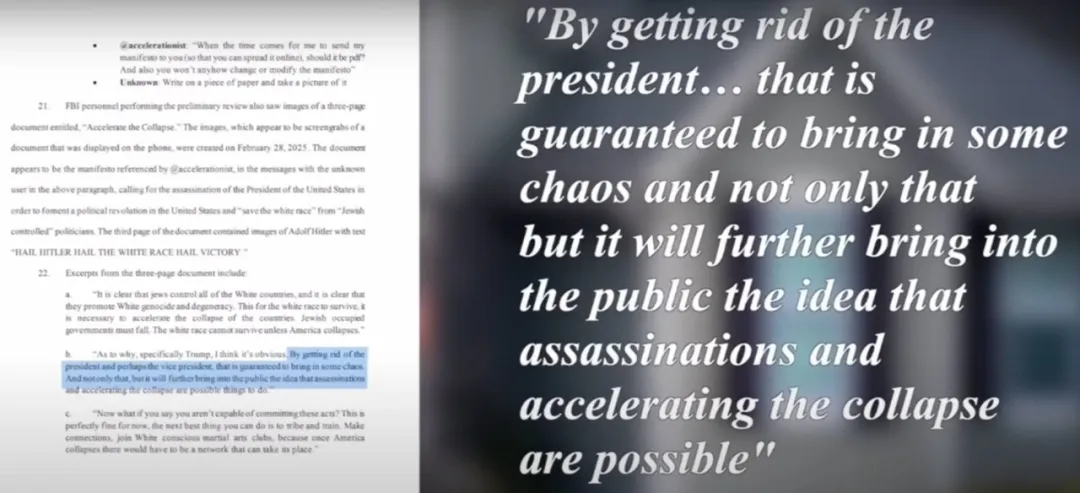 至于为什么选择特朗普,在卡萨普的文字里写道:“答案显而易见。除掉总统甚至副总统,必将引发混乱!” 他宣称要拯救白人种族。