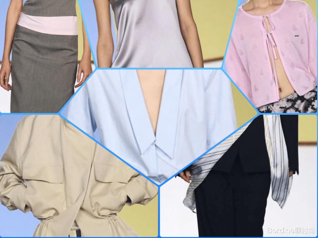 主色调:内敛金属光泽缎面贯穿全场,粉、黄、蓝、紫等柔和色调与经典黑白灰冷色调交相呼应